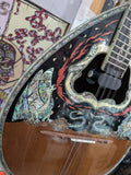 This bouzouki is based on Niavent’s top-tier 8-string Model #14 and features a hand-carved Honduran cedar soundboard, and a Honduran cedar neck paired with a varnished ebony fingerboard decorated with mother-of-pearl and synthetic shell inlays. The instrument is finished with extensive dragon-themed abalone ornamentation, multi-layer binding, and a professional-grade pickup system for stage performance.