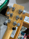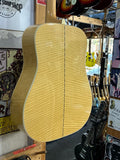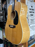 Beautiful flamed maple with spruce soundboard. Often referred to as Martin lawsuit guitar, this model packs many design features, look, feel, playability and tone range of a Martin Dreadnought. Made in Japan in 1973. Bears the same headstock font used by C. F. Martin & Co. (Takamine was the original option for Martin's quest to produce their offshore line of Sigma guitars before Kaman acquired Coast Distributors/Takamine). With hardcase.