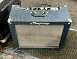 Made in USA 1990s vintage, 50 watt all tube guitar combo with an Ampeg 12 inch speaker, footswitchable spring reverb and tube tremolo. The Ampeg trem can give super slow or helicopter fast sounds and everything from a mellow Fender style sound to a hard chop. 6L6 output tubes give a nice low end thump and great clean tones.