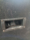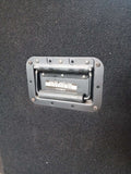 200 watts - 8ohms. 1 x 15” speaker. Carpet covering with handles and castors