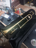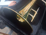 Designed for students, this tenor trombone has a durable design that withstands dings and scratches with ease, in addition to a 0.500-inch bore for great breath support. With a 8-inch yellow brass bell for a traditional sound with excellent balance. It comes with hand-matched nickel-silver outer and inner slides for effortless playability. mouthpiece and case, covering everything you need in one purchase. Few things are more memorable than a first instrument: purchase an Eastman ETB324 Student Trombone. w/ case
