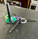 Nice solid base stand for your trumpet, cornet, pocket trumpet, C trumpet, bugle or upside down wine carafe. Legs cleverly fold inside so it can travel in the horn of your trumpet, taking up no extra case space.
