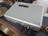 55x32cm board space. Comes with silver case with broken hinges. Does the job to transport though.