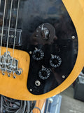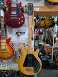 Made in Japan, 1980 Aria Pro II LB-650, Aria’s famously well-built take on the Gibson Ripper. Maple body and set maple neck, twin wide-aperture sidewinder humbuckers, and the classic 4-way rotary selector for series/parallel and pickup-solo tones. Original heavy cast bridge, original tuners, and full black Ripper-style pickguard. Punchy, mid-rich, and super solid—Matsumoku quality all the way. With OHSC.