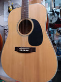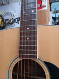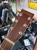 Laminated mahogany back and sides. Spruce top *small crack from the back of the bridge, has been glued up and appears to be stable. Plays nice and sounds good.