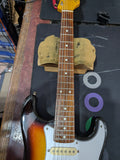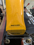 Made in Japan 2012–2013. Smart Size short-scale model (22.7 inch scale, ~85% body size). Basswood body, maple neck, rosewood fingerboard, 21 vintage frets. Hardtail string-through bridge. Three-pickup layout with a rail humbucker in the bridge position (non-original), standard 5-way switch, volume and tone controls. 3-tone sunburst finish in excellent condition. All hardware and electronics fully functional. Compact, well-built MIJ Strat with quality construction.