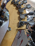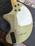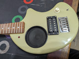 Banana guitar with speaker system. Very poor headstock repair, but holding steady under tension. Speaker switch a little loose but works fine. Prices accordingly.