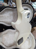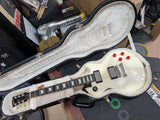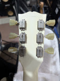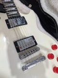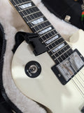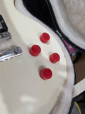 Made in USA, 2011, Mahogany body with carved maple top, set mahogany neck, and the distinctive Alpine White. Replacement red speed knobs. Loaded with Gibsons 2011 spec 490R / 498T humbuckers for thick, punchy rock tones and smooth sustain. Ebony fingerboard, and all the classic LP hardware.