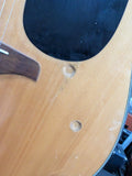 Made in China, Crafted with a solid sitka spruce top, nato wood back and sides, and a genuine rosewood fingerboard. This example has had 2 holes in the top (Originally for pots) filled.