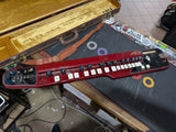 Made in Japan electric Taishōgoto (also known as a Nagoya harp). This is the Alto model, offering a deeper register than soprano versions. Features a traditional key-based pitch mechanism, solid wooden body, and built-in electronics with standard 1/4 inch output for use with amplifiers and effects pedals. With case.