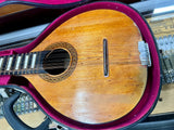 Spanish hand made vintage instrument. 3 pairs of strings and two courses of 3 strings for a total of 12. Playable and solid, but the back could use a minor glue repair at the bottom.