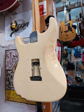 Made in USA - 2005 Jeff Beck Artist Series. Alder body, 2 point tremolo system, Maple neck with rosewood board (Soft C neck profile) Hot noiseless pickups, LSR roller nut, locking tuners, access heel. Medium jumbo frets have tonnes of life left and locking tuners. w/ SKB case and DiMarzio clip on strap. *This guitar has some extensive finish damage around the horns and bottom bout. The poly is split and coming away from the timber. Small hole at the back of the headstock when some tools might have previously been mounted. Definitely a great players guitar, collectors need not apply.
