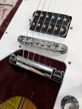 A couple of minor dings on the back of the neck. Frets in excellent condition with no grooves or significant wear. All pots replaced with new CTS pots and an orange drop cap added. Both wing tips and headstock are in great condition with none of the usual dings or damage associated with this style of guitar.