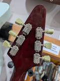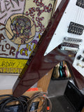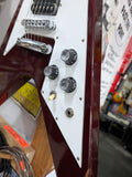 Made in the USA on October 22 1995. This classic Gibson Flying V 67 Reissue features a mahogany body and slim 60s neck with rosewood fingerboard. Equipped with Gibson 496R and 500T humbuckers it delivers the high output bite these 90s models are known for. Finished in Dark Cherry with the large half guard pickguard Nashville Tune-O-Matic bridge and Kluson style Deluxe tuners. A great example of a mid 90s USA Flying V.