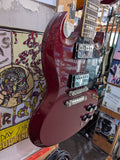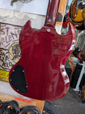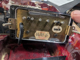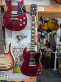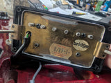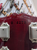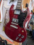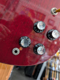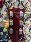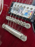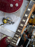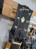 Made in Japan 1990, Fujigen. Mahogany body and set neck, bound rosewood board with trapezoid inlays, open-O Greco logo with crown inlay, batwing guard, ABR-1 bridge and stopbar. Pickups are upgraded to Schaller humbuckers.