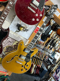 Made in China. 2018. Excellent condition. Semi-hollow, gold finish is applied. Thin neck profile vintage-style witch hat knobs, Hagstrom Custom 58 humbucking pickup in the bridge position provides classic smooth and elegant rock tones. Coil-split is available via push/pull tone controls providing an expansive sonic palette. w/ OHSC