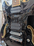 Cool hollowbody Ibanez guitar with Dimarzio pickups added. has some lacquer cracking on the sides of the body. w gigbag