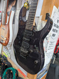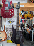 Japanese-made 2008 RG1570 Prestige finished in the rare factory Galaxy Purple sparkle. It features a basswood body, Wizard Prestige 5-piece maple/walnut neck, 24-fret rosewood fingerboard, and the Edge Pro tremolo. Pickups are the stock V7 neck humbucker, S1 middle single-coil, and V8 bridge humbucker.