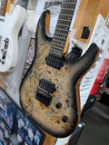 Schecter C-6 Pro Electric Guitar – Charcoal Burst: Mahogany body with burl top, 3-piece maple neck with carbon rods, wenge fretboard with 24 X-jumbo frets, Schecter Diamond Decimator humbuckers, string-through hardtail bridge, coil-split push/pull.