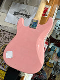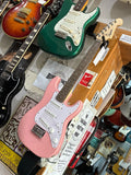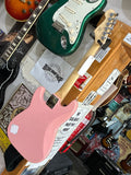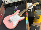 AS NEAR TO NEW AS POSSIBLE- With Box - 3/4 Size Stratocaster. The Squier Mini Stratocaster® is the perfect companion for players seeking a reduced-size instrument with classic styling and familiar Fender tone. Highlights include a thin and lightweight body, an easy-to-play C-shaped neck profile, a trio of Squier single-coil pickups with 5-way switching for sonic variety, and a hardtail bridge for solid tuning stability. Shell Pink! w/box