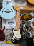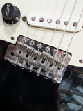 *LEFT HANDED* 1984, Tokai Goldstar Sound ST-50, built in Japan during Tokai’s golden era. Features a one-piece maple neck, black finish (likely alder body), Kluson-style Deluxe tuners, upgraded modern Tokai 6-screw trem, and loaded with the infamous E-series Alnico pickups. Non original knobs. Some minor fret wear on the high strings.