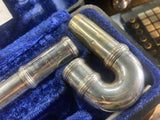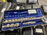 A popular, durable student-level concert flute, manufactured in Elkhart, Indiana, USA, designed for beginners and early intermediates. It features a silver-plated headjoint, body, and keys with a closed-hole, offset G configuration. Renowned for a reliable, bright tone, this model is a common choice for student musicians. w/ case