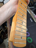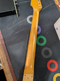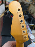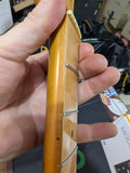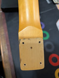 Neck with tuners, unsure what model it has been removed from. Missing nut, previously a rear mounted locking nut (holes plugged). Back of the neck has been badly painted as some point. Frets in good condition.