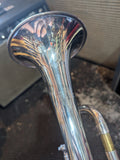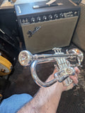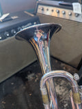 Trumpet, silverplate in fine cosmetic condition. ( some minor dings to the bell ). Made in USA. With original moulded ABS case.