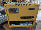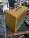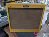 The Fender Blues Junior is a 15-watt all-tube combo amplifier made in Mexico in 2007. It uses three 12AX7 preamp tubes and two EL84 power tubes. The amp runs a single 12-inch Fender Special Design speaker built by Eminence. Controls include Volume, Treble, Bass, Middle, Master, Reverb, and a Fat boost switch.