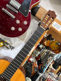 Solid Cedar Top, Laminated rosewood back and sides and ebony fingerboard.