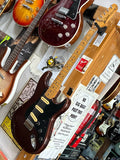 Vintage - August 1982 Made in Japan - Made by Ibanez / Fuji-Gen - Stratocaster Copy - 2 Piece Alder Body under translucent Mocha / Walnut finish - Maple Cap Fingerboard over Maple Neck - Single Ply Pickguard - Original Brass Saddles on Hardtail bridge for extra sustain. Road Worn but an awesome player.