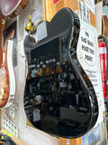 Fitted with three Fender Lace Sensor Gold single-coil pickups. Electronics include a 25 dB active mid-boost circuit and TBX tone control powered by a 9 V battery. Controls are master volume, master mid-boost, and TBX tone. Five-way pickup selector. American Vintage synchronized tremolo, with Kluson-style tuners and vintage bent-steel saddles.