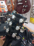 Bold on neck, made in Japan. Nylon saddles and two humbuckers.