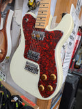 The J&D deluxe TL guitar series provides authentic vintage tone and playability at an unprecedented price. Each J&D deluxe TL guitar is constructed using historically proven tone woods and features a 3-way switch with independent volume and tone controls, as well as a vintage style floating tremolo bridge. Loaded with J&D humbucker pickups. With gig bag.