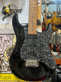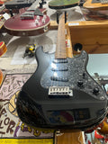 Slickest looking shredder in town. Great axe for the price. Two humbuckers with master volume and tone. Thin neck with shark fin inlays and red binding