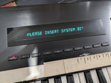 Vintage 12-bit keyboard sampler made in Japan. Features 61 keys, onboard sampling, and full editing capabilities when booted from a system disk. This unit powers on and displays “Please Insert System Disk,” but no boot disk is included, so further testing hasn’t been performed. Sold as is, untested due to lack of system disk.
