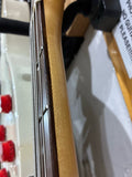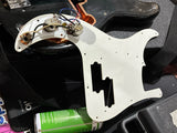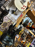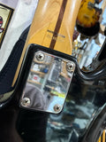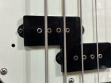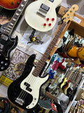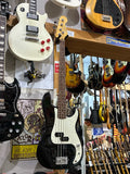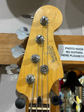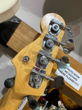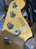 Based on the Neck feel and spec we still think it is Fender associated BUT it would be best reckoned as a refinished and modified SQUIER PRECISION BASS from eras unknown (maybe late 90s early 2000s?). It has new pickups in the DiMarzio style that sound pretty good and the bass plays well too.