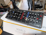 Built with three powerful oscillators, a coveted 24dB/octave ladder filter, and flexible layout made to play nice with other gear in your rig, the Behringer Model D Analog Synthesizer fits a world of fat, expansive monosynth power into a semi-modular desktop presentation. Made in the image of an analog synth classic, Behringer's Model D dials in the much-loved thick basses and world-rending leads right out of the box with added flavor from a white/pink noise generator, overdrive circuit, and USB MIDI capability to seamlessly integrate fat sound into your setup at an attractive price. With box.