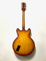 Made in Japan. 1970s. “Custom”. Every bit the excellent 335 copy. Great feel and sound and very good condition for age. Set neck. Block inlays on the fingerboard. Overall very good condition. Could use a fret dress but very playable.