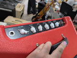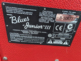 The Fender Blues Junior III Red October Limited Edition combo amplifier is more than just a 15-watt tube amp; it's a vintage tone machine! Complete a limited edition Bronco Red vinyl covering with white piping, this warm-toned amp will floor you with its depth of character. Three 12AX7s and a pair of EL84s powering an Eminence 12 inch Redcoat Wizard speaker give you everything from crystalline Fender cleans, to crispy crunch, to growling overdrive.