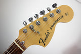 Features a maple neck with rosewood fingerboard, traditional Strat controls and three single-coil pickups with staggered pole pieces. Hardware includes Gotoh tuners and a vintage-style Fender tremolo with bent steel saddles.