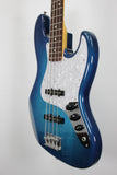 Electronics consist of FGN JBD-1 and JBD-2 single-coil Jazz Bass pickups controlled by the standard neck volume, bridge volume, and master tone layout.