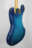 The instrument features a basswood body finished in transparent blue burst, paired with a bolt-on maple neck and rosewood fingerboard with dot inlays. The bass has a 34 inch (864 mm) scale length and 20 frets.