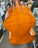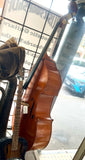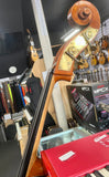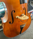 Dolfin 3/4 D Bass, Fresh set of Dādarrario Helicore strings, hard wood tail piece Carbon fibre bow and end rod. Been serviced and checked over by Puglisi *split in the neck has been professionally repaired during the service. Includes carbon fibre Bow