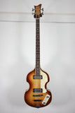 Fitted with two Greco humbuckers and the traditional Hofner-style control panel (Rhythm/Solo, Bass On, Treble On, dual volumes). Hardware includes a floating wooden bridge, trapeze tailpiec, set neck, and rosewood fingerboard. Non original knobs.