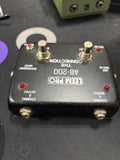 Pro deluxe double switching box. Features 2 on/off footswitches, instrument in, aux out/in, channel A and channel B outputs. Battery check. LED function indicators.
