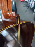 Made in Japan - 1976. 660mm Scale length. Tight grain spruce top, Indian Rosewood back and sides, ebony fingerboard, rosewood bridge mahogany neck with ebony centre strip. Bone nut and saddle, 5-ply purfling on the top and rosewood binding. Noice break angle behind the saddle and a fresh set of Savarez Reds. w/case and polishing cloth
