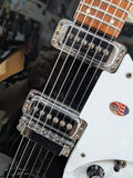 Made in USA, April 2004. Featuring a double-cutaway maple body and set neck construction. It uses a 24¾-inch scale length and a rosewood fingerboard with dot inlays. Fitted with two Rickenbacker single-coil pickups and a traditional Tune-o-matic-style bridge with the classic R tailpiece. With OHSC.